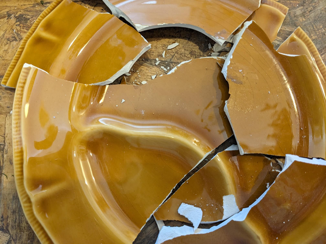 D'une ancienne assiette jaune Provençal , je suis devenue bijoux...